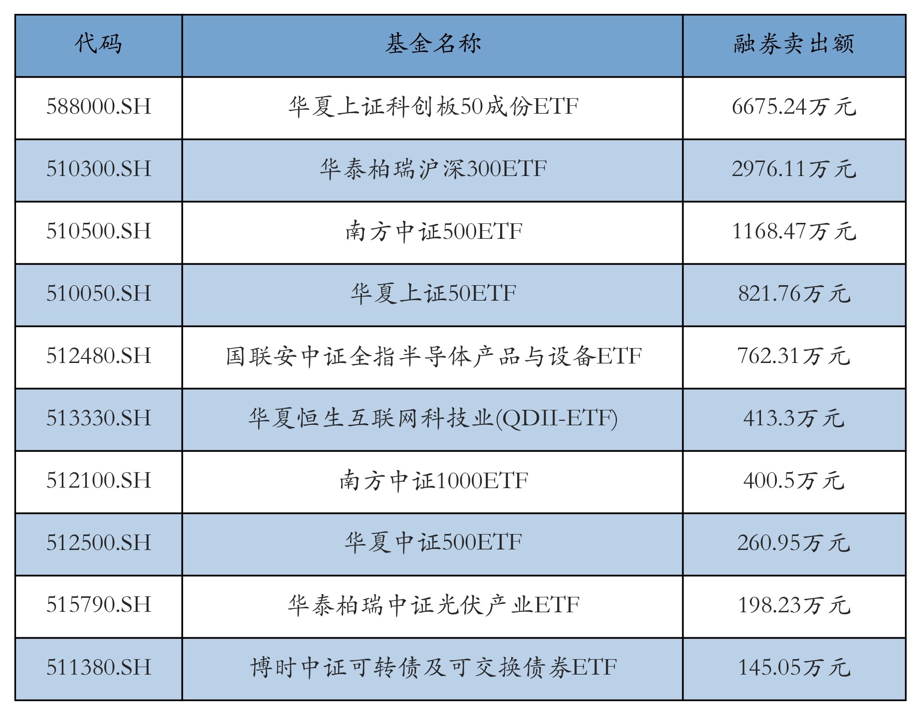 9月10日ETF融券卖出额前三位分别为:华夏上证科创板50成份ETF(6675.24万元)、华泰柏瑞沪深300ETF(2976.11万元)和南方中证500ETF(1168.47万元),前10具体见下表: